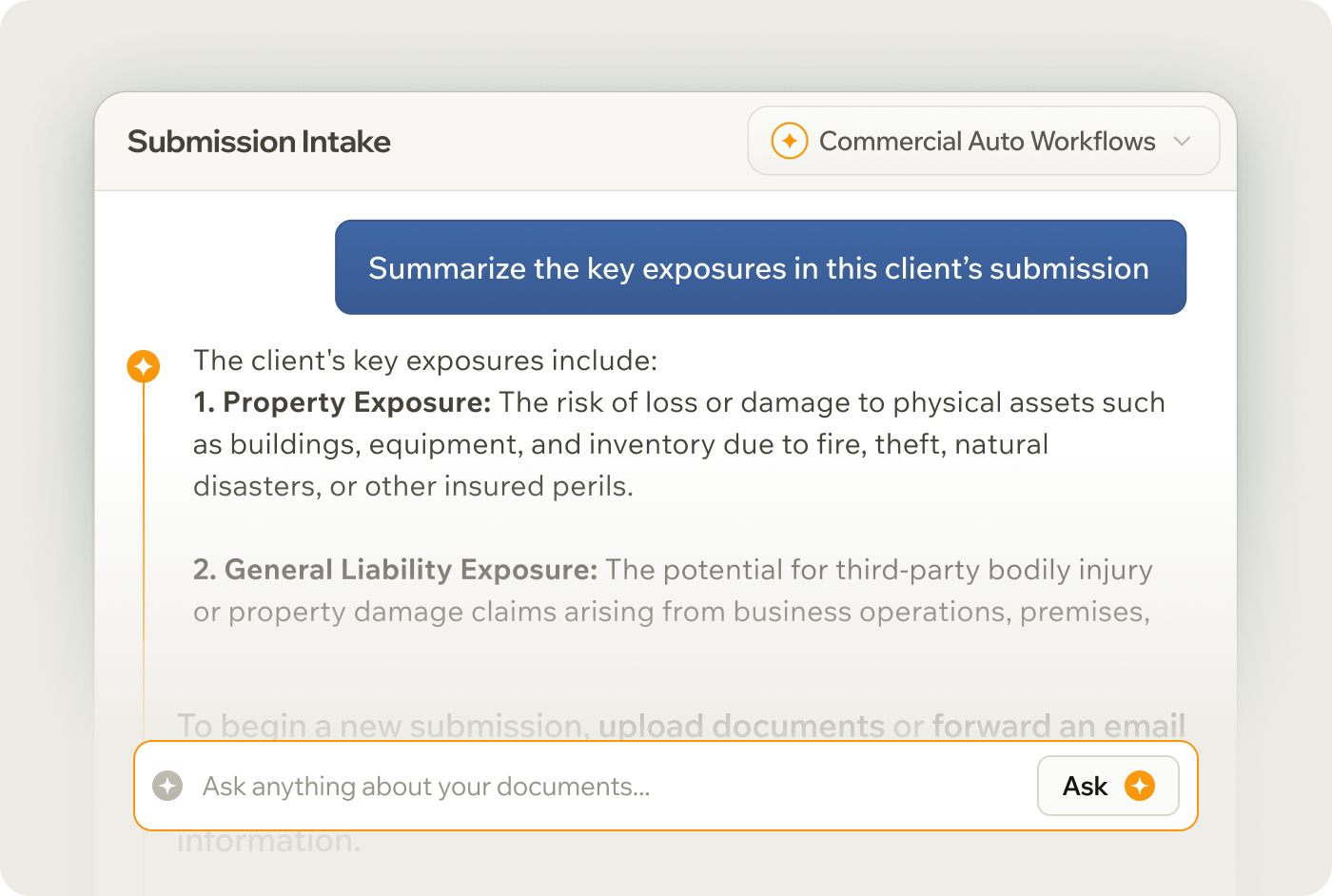 Break free from manual processing that slows binding decisions. Automated document intake, regulatory compliance checks, & instant policy packaging - so you can bind more business faster.