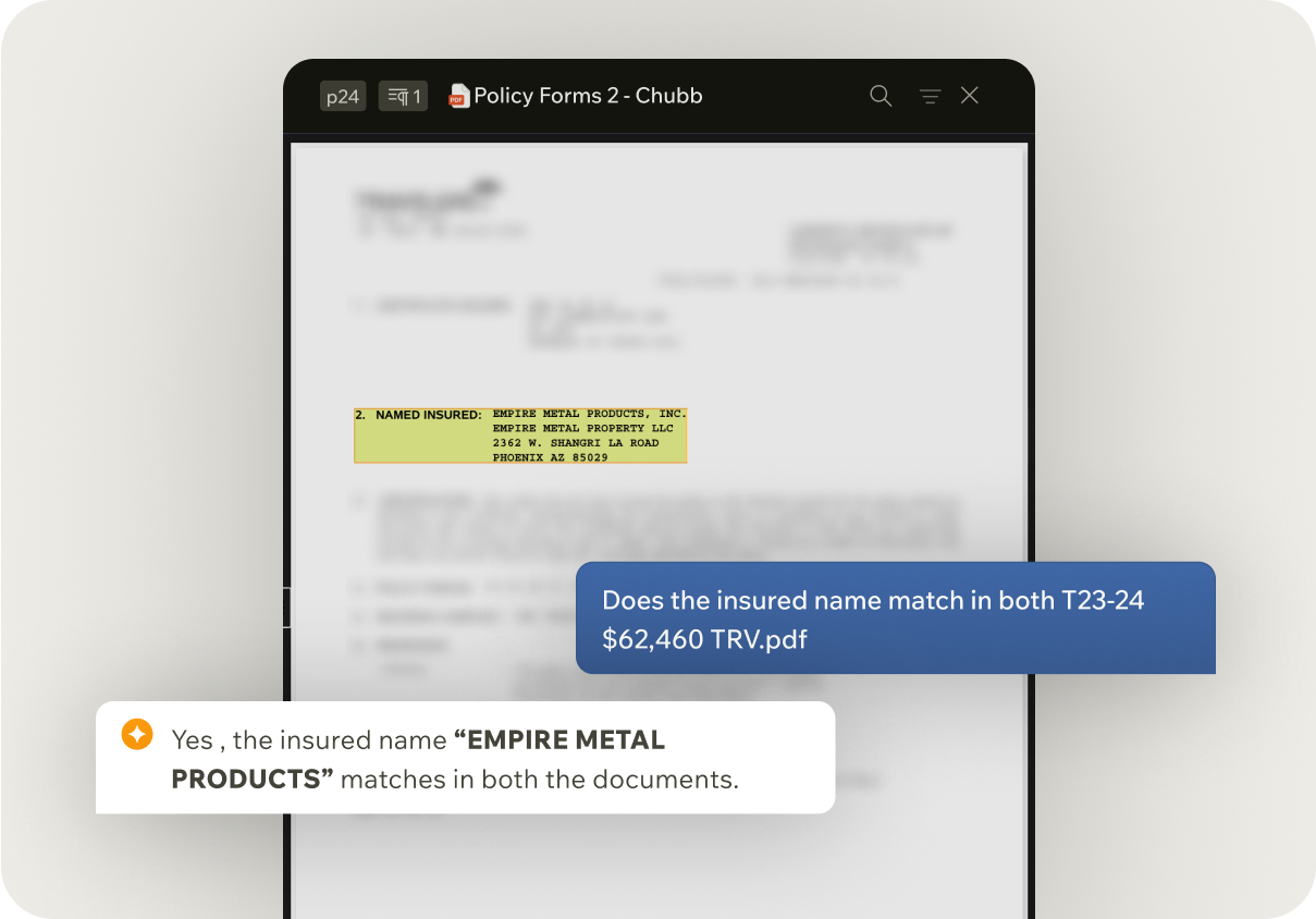 Normalize SOV spreadsheets, PDFs, & attachments into clean property schedules. Extract locations, TIV, & COPE data automatically, flag missing information with citations.