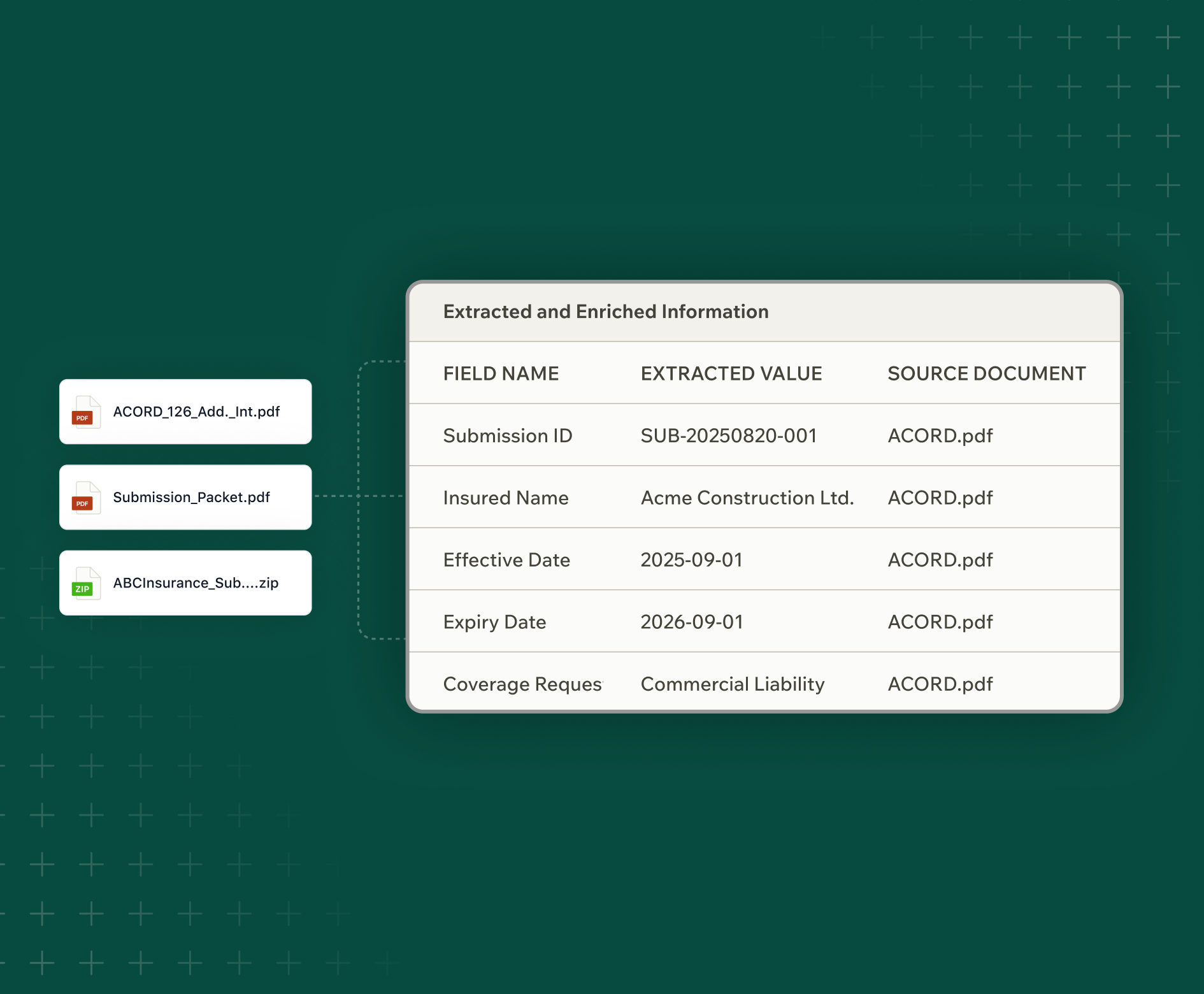 Convert any broker packet (mixed forms, h&writing, email threads) into clean underwriting files. Extract all exposures & terms, flag missing data with citations.
