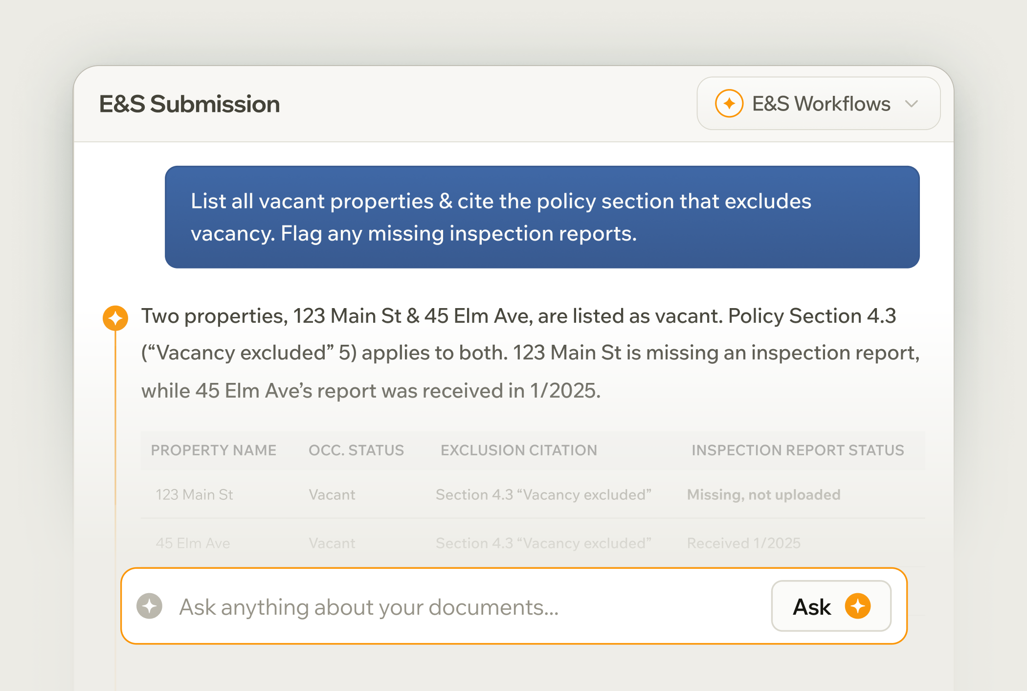 Catch binding authority coverages before they hit your desk. Auto-build audit trails with source links.