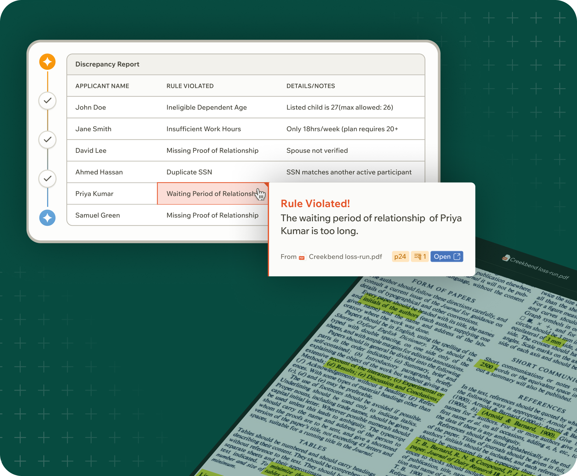 Verify eligibility & participation against product rules automatically. Surface discrepancies to prevent late corrections & audit findings.